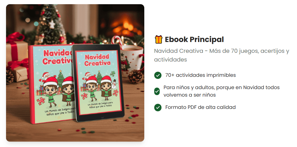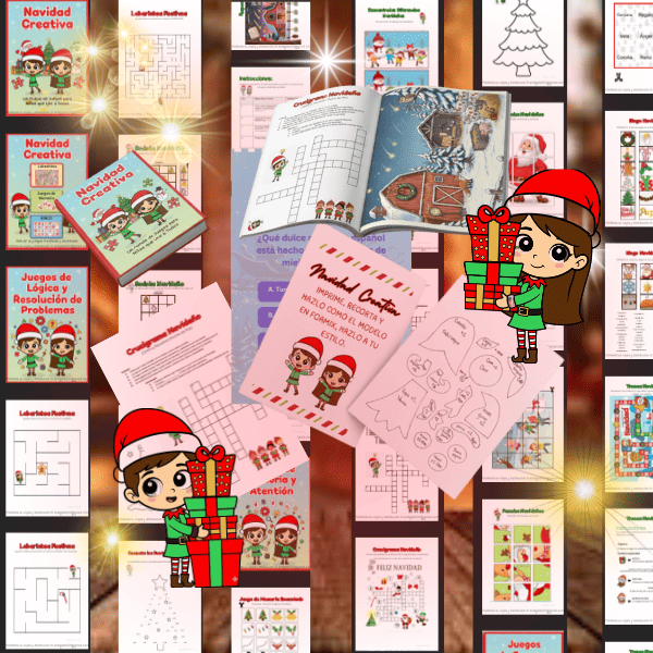 Este ebook está cuidadosamente diseñado con contenido exclusivo, actividades estructuradas y un enfoque visual único. Además, gracias a su formato digital, puedes acceder a él en cualquier momento y lugar: en casa, en el coche o de viaje. Las actividades están organizadas para que cada una desarrolle habilidades específicas de forma divertida. ¡Es mucho más que un simple juego: es una experiencia navideña educativa y creativa!